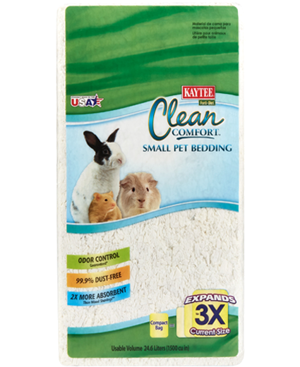 Clean Comfort White small pet paper bedding is super soft, absorbs 2x more liquid than wood shavings, guaranteed to control odor and 99.9% dust free for a cleaner cage!
